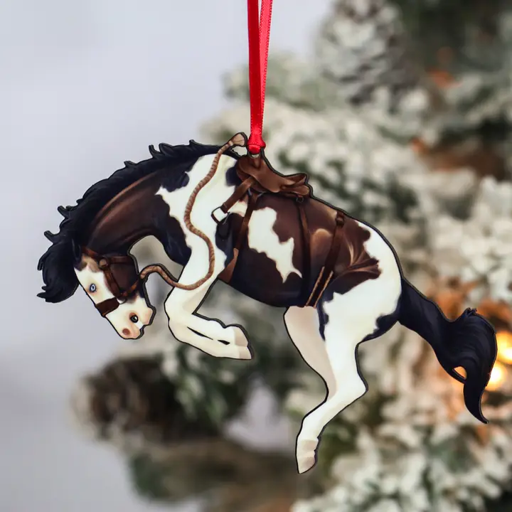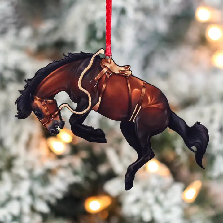 horse ornament for display year around as well as the Christmas holiday season This hand made 1/8″ thick composite wood laser cut horse would look great on an equestrian’s Christmas tree during the holidays, on the mantel, hanging on the wall or wherever is most fitting.